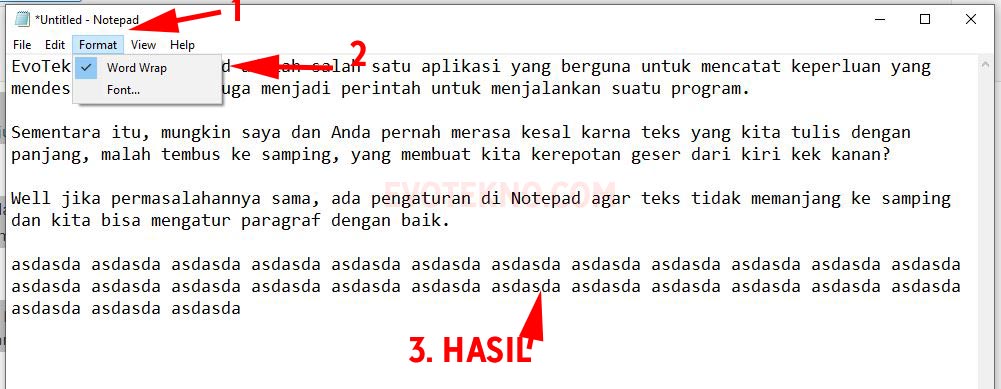 Nantinya paragraf akan menyesuaikan dengan ukuran windows Notepad.