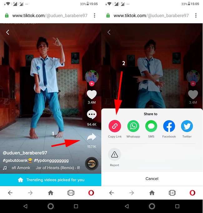 - Pertama yang harus Anda lakukan menyalin link video TikTok-nya, caranya buka videonya kemudian klik ikon “Share“, lalu klik ikon “Copy Link”