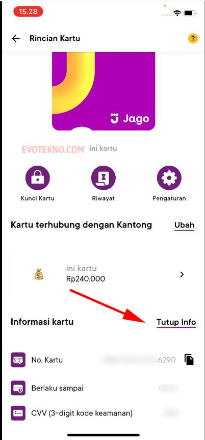 • Credit Card Details: Isi nomor-nomor yang terdapat pada kartu, jelasnya Anda bisa buka pada aplikasi Bank Jago, klik “Lihat Info“, nantinya Anda akan mendapatkan tiga nomro mulai dari no. kartu, no. kadaluarsa dan no. CVC.Cara Isi Saldo di Vutlr pakai kartu debit bank jago