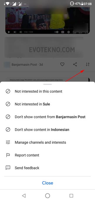 • Not interested in this content (Artinya agar berita seperti ini tidak muncul lagi)