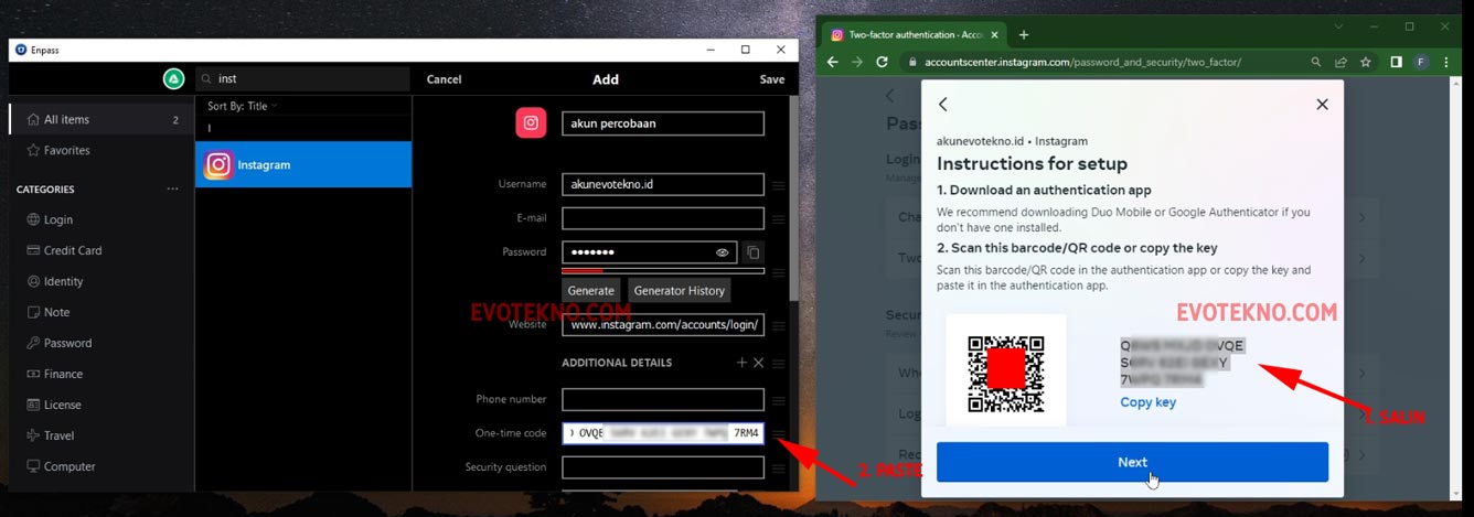 Cara Mengaktifkan 2FA Instagram Menggunakan Enpass