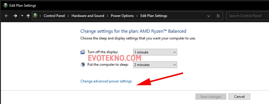 - Kemudian klik “Change advanced power settings“