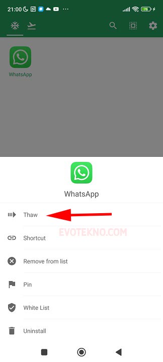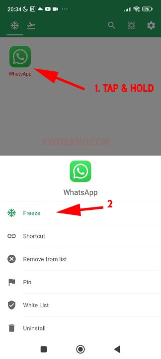 Contohnya bisa Anda lihat pada tutorial versi video, saya freeze aplikasi WA.