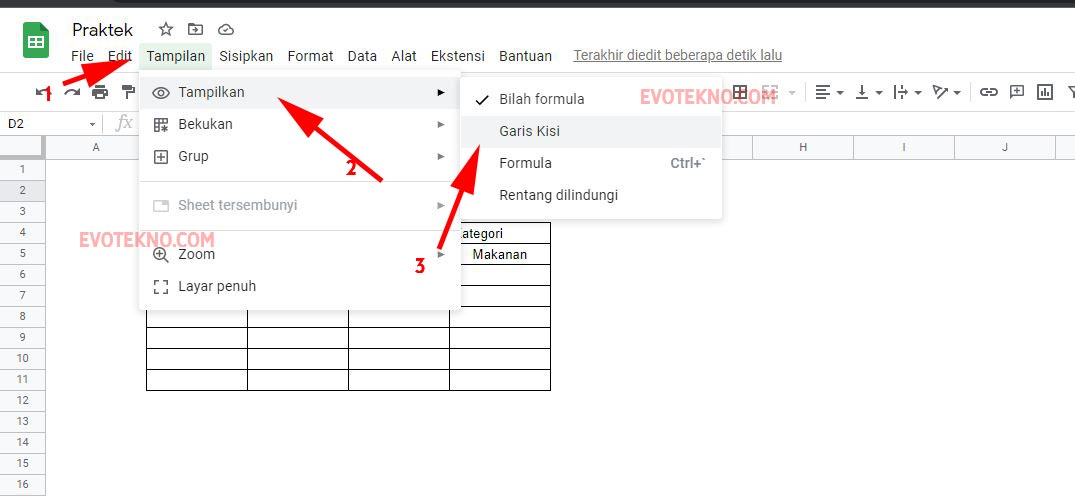 Tampilan – Tampilkan – Garis kisi – Gridlines – Google Sheets