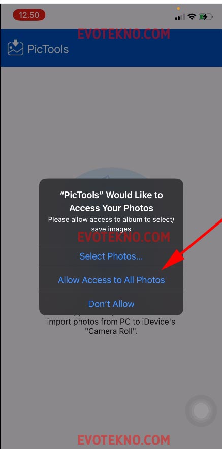 - Buka aplikasi PicTools, kemudian klik “Allow access to All Photos” untuk menyetujui akses ke semua foto/video.