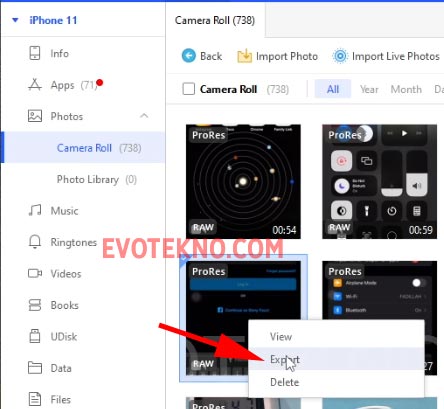 - Untuk export, klik kanan pada foto lalu klik “Export“