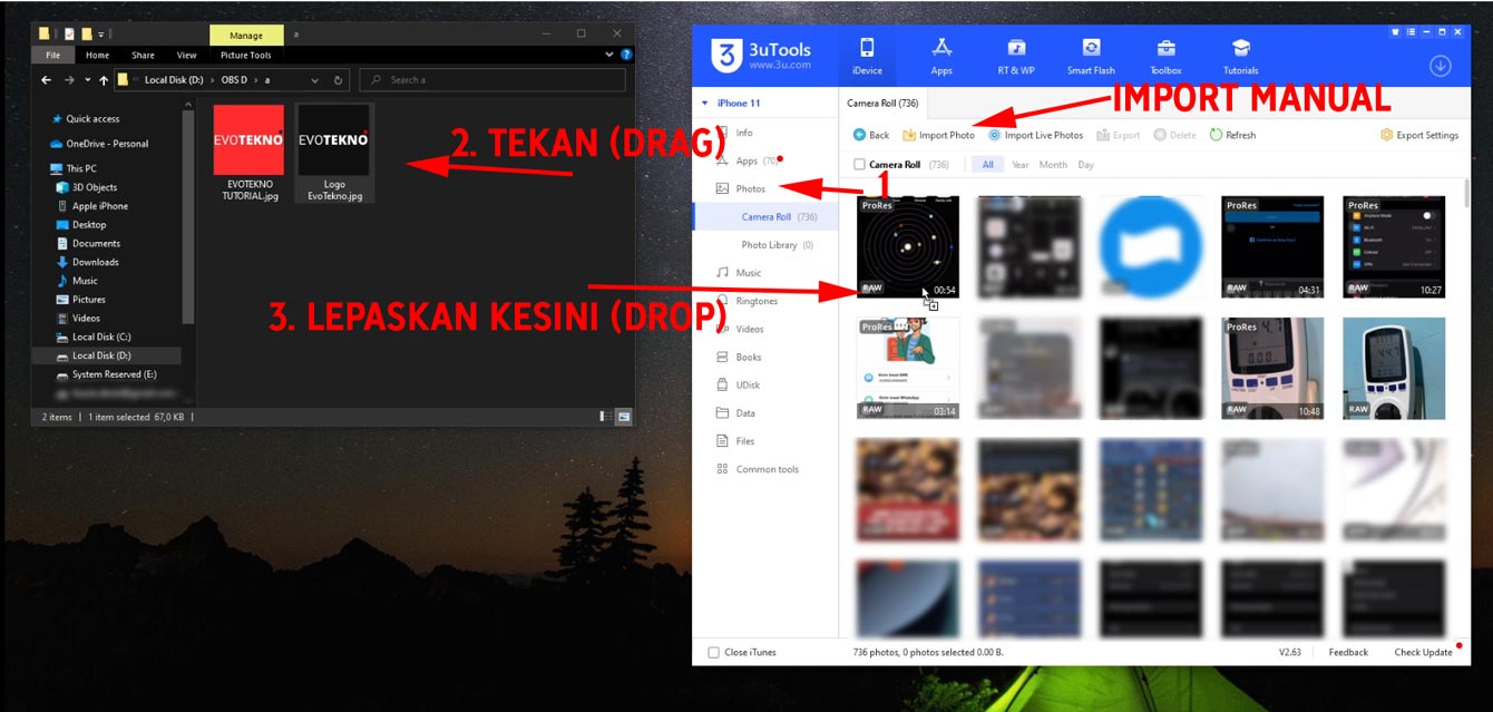 - Nah cara termudah untuk import, Anda bisa drag & drop dengan menekan filenya lalu lepaskan ke arah aplikasi 3uTools.