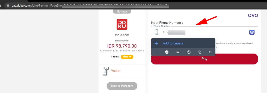 - Lalu masukan nomor telepon yang terdaftar dangan OVO.
