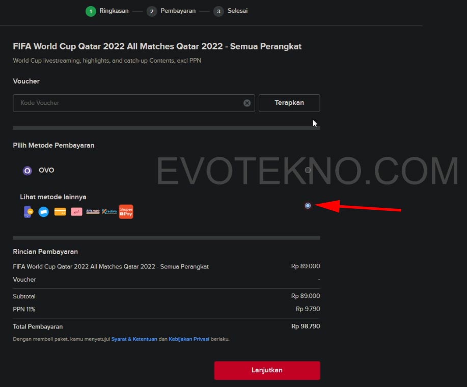 - Nah untuk metode pembayaran saya sendiri pakai OVO, tapi disini ada banyak.