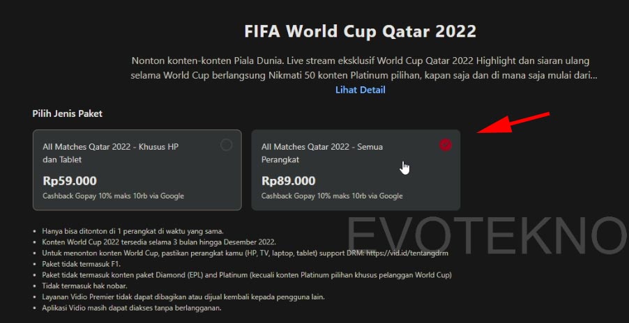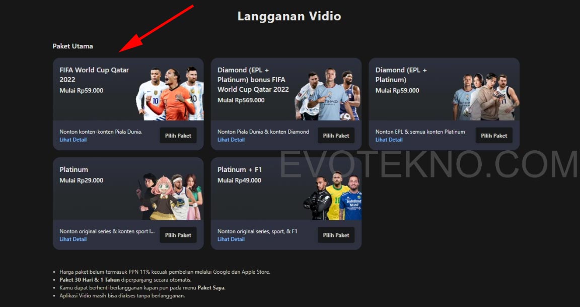 - Lalu pilih paket yang menyediakan konten “FIFA World Cup“.