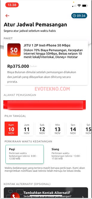 - 5%: Walaupun saya buat jadwal 10 Nov. (besoknya) tapi tak lebih dari 1 jam, langsung ada WhatsApp (WA) dari teknisi untuk menanyakan alamat. Sayapun langsung sharelock.