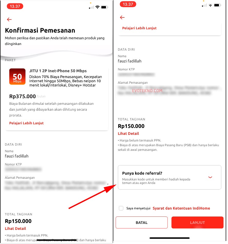 Intinya cukup membawa nomor internet yang Anda dapatkan tadi.