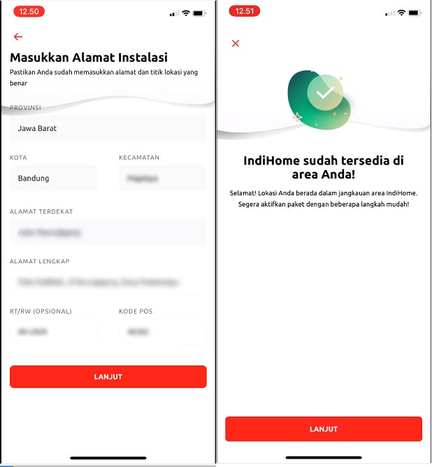 - Setelah itu pada bagian alamat lengkap, isi dengan jelas seperti “Dekat Masjid, No. 123 , Jl. Riau, RT00/00…..” agar nantinya teknisi mudah mencari rumah Anda.