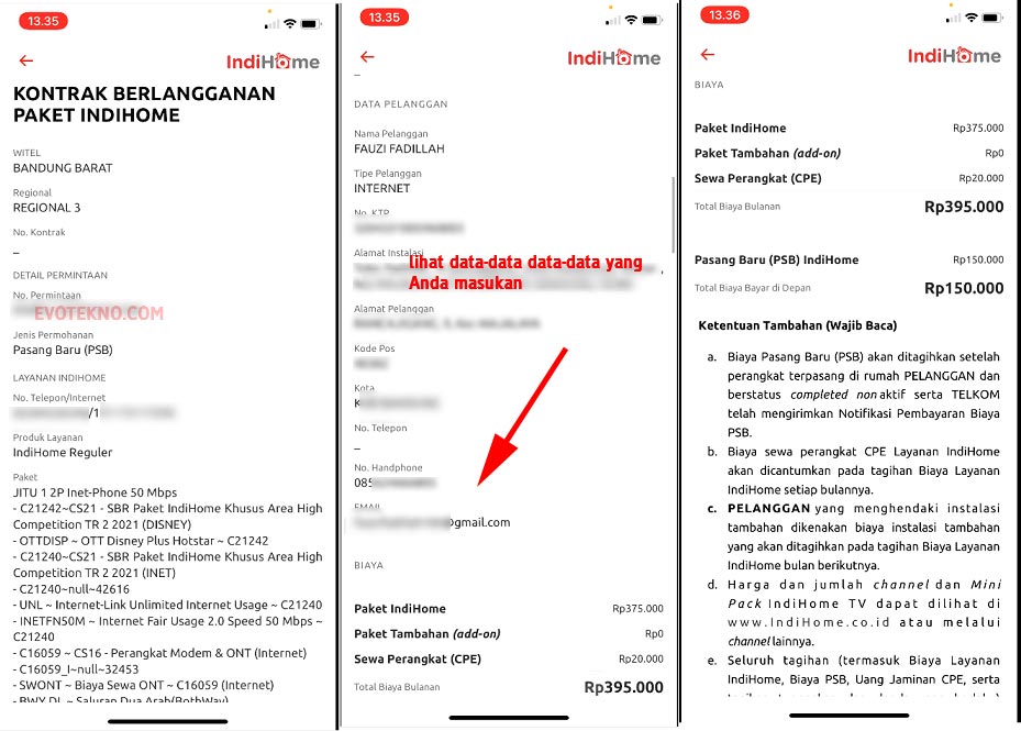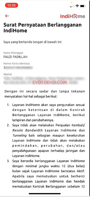 Dibagian sini Anda bisa lihat-lihat data yang Anda kirimkan, serta kontrak yang diberikan oleh Telkom, tentu disana ada aturan-aturan yang perlu Anda ketahui.