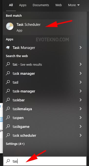 - Pertama pada pencarian Windows, tuliskan “Task Scheduler” nantinya akan muncul aplikasi bawaan dari Windows tersebut.