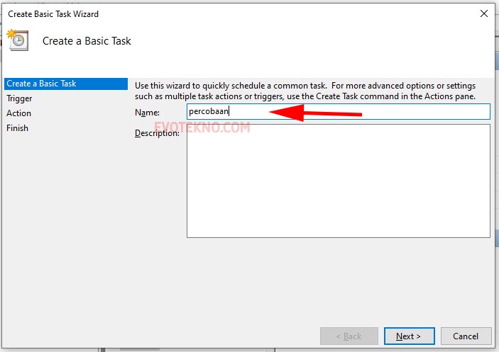 - Create a basic task, bagian sini bebas Anda beri nama untuk task-nya