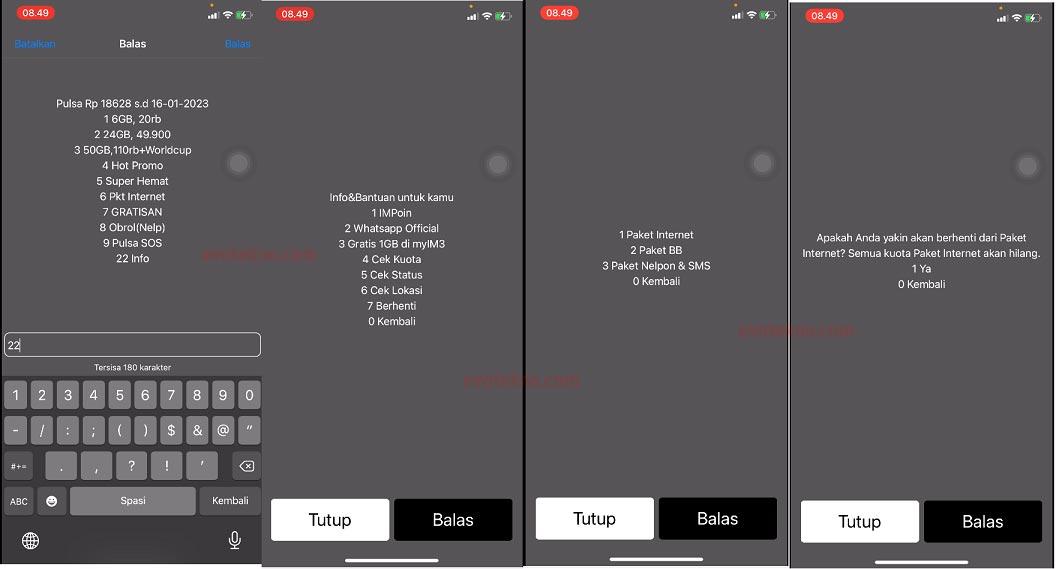 - Selanjutnya pilih “Info” dengan memasukan angka 22 lalu klik “Balas”