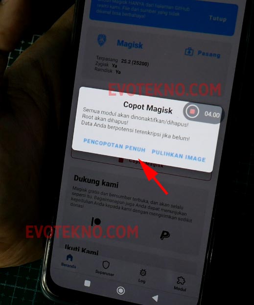 - Nantinya akan memproses penghapusan Magisk, dan akan reboot secara otomatis
